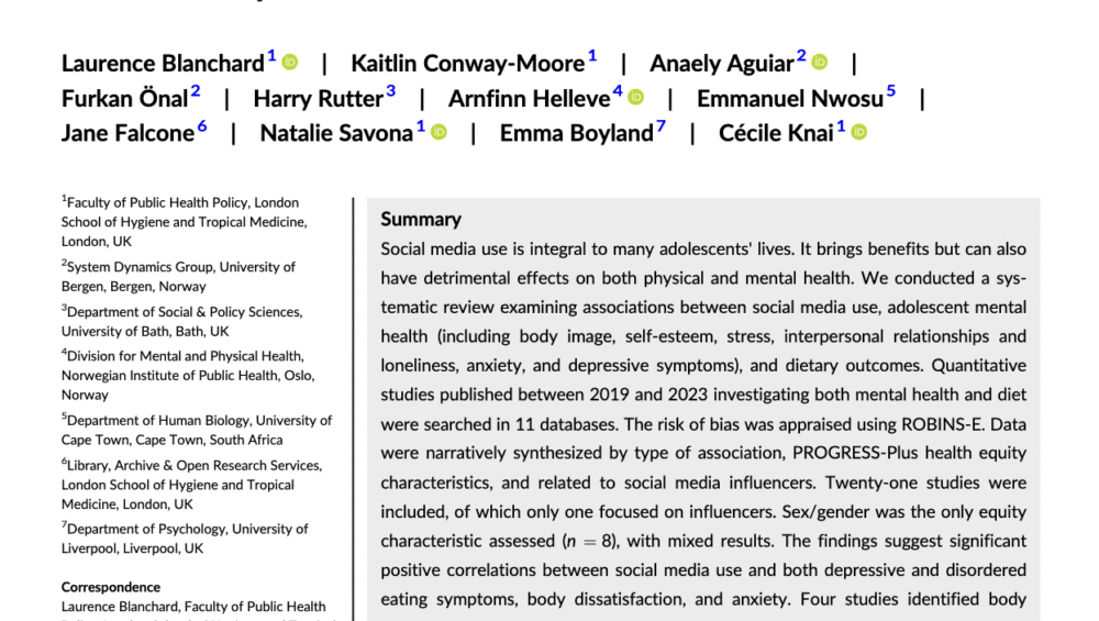 CategoriesUncategorizedThis systematic review explores links between social media use and negative mental health outcomes such as depression, anxiety, and body dissatisfaction. It also highlights associations between social media exposure and disordered eating, with body image, self-esteem, and anxiety often mediating these effects. The findings point to the need for strategies that address the psychological and […]