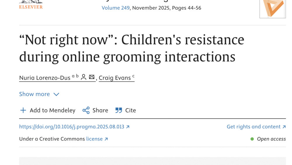 CategoriesUncategorizedThe study identifies types of children’s discursive resistance based on established politeness and impoliteness taxonomies, and quantifies the tendency for children to produce these based on evidence from a specialist corpus of 80 online grooming chatlogs, shared by UK law enforcement for research purposes.